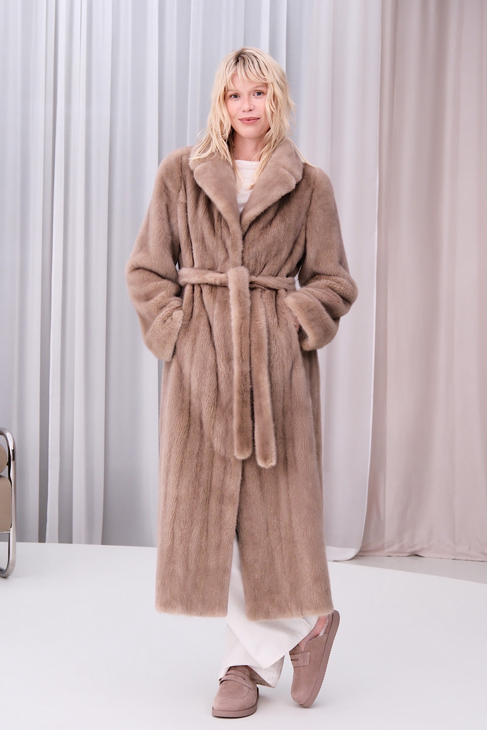 Wrap yourself in opulence with this long Mink Coat, a true expression of timeless luxury. Expertly crafted from the finest genuine mink fur, its pastel hue enhances the coat’s natural luster and unmatched softness. The full-length silhouette drapes gracefully, offering both exceptional warmth and refined elegance.